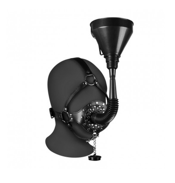 MÁSCARA CON MORDAZA Y EMBUDO EXTREME NEGRO OUCH!